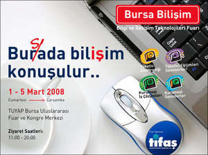1 - 5 Mart 2008 tarihleri arasında Bursa Tüyap Uluslararası Fuar ve Kongre Merkezi’nde düzenlenecek olan Bursa BiliÅŸim Bilgi ve İletiÅŸim Teknolojileri Fuarı’nın Ana sposorluÄŸunu Türk Telekom üstlendi. KOSGEB tarafından desteklenen fuarda ayrıca, Digiturk ve Teknolojix Resmi sponsor, Avea İletiÅŸim sponsoru, BThaber gazetesi de Basın sponsoru olarak yer alacak.