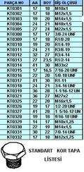 Alman standartlarında (dın) belirtilen kör tapaların Boy,(AA)anahtar agzı,ve metrik diş ölçülerinin hazır listesidir.Liste Torna ve CNC tezgahı olan tüm işletme ve atölyeler için bir kaynak olabilir, talaşlı imalat ile ugraşanlarda mutlaka bulunması gereken bir listedir.